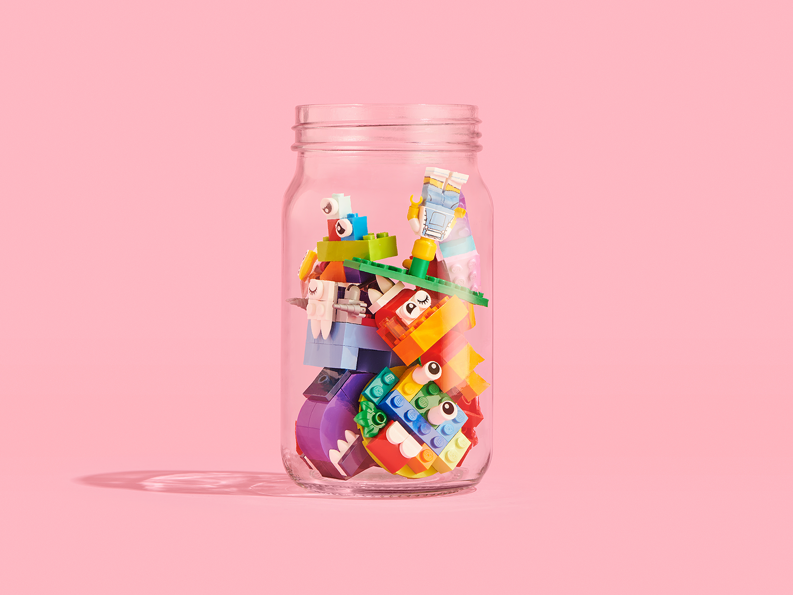 Wenn ihr fertig seid, bitte dein Kind, seine Kreation in das „Gefühleglas“ zu legen. Stelle das Glas so in der Wohnung auf, dass es sichtbar ist, um dich an regelmäßiges gemeinsames Bauen und miteinander Sprechen zu erinnern. Wenn das Glas mit mehr Bauwerken befüllt ist, bietet es eine rasche Möglichkeit, nachzuhören, wie es deinem Kind aktuell geht. Dazu stelle einfache Fragen wie: „Fühlst du dich ein bisschen wie eines dieser LEGO Bauwerke, die du gemacht hast?"