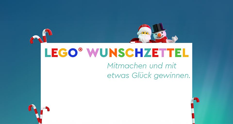 Schicke uns deine Wünsche als Video, Foto, Zeichnung oder Text über unser digitales Formular oder per Post an: LEGO® GmbH, Werner-von-Siemens-Ring 14, 85630 Grasbrunn, z. Hd. : Weihnachtself , um am Gewinnspiel teilzunehmen. Einsendeschluss ist der 10.12.2023 (23:59 Uhr). Du erhältst eine automatische Bestätigungsmail über die eingegangene Gewinnspielteilnahme und sicherst dir so die Chance auf unsere tollen Gewinne.