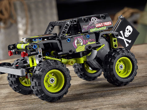 Das Set kombiniert zwei Modelle in einem: Der Monster Jam® Grave Digger® lässt sich in einen Gelände-Buggy umwandeln.