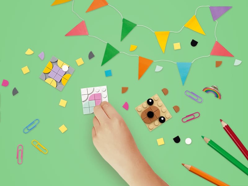 Cool, quirky and bursting with personality, LEGO DOTS mini tiles are for kids ages 6+ who love craft making, accessories and art and DIY projects. From funny, funky, themed bracelets to mosaics and room décor sets, kids can accessorize, customize and personalize their creations.
