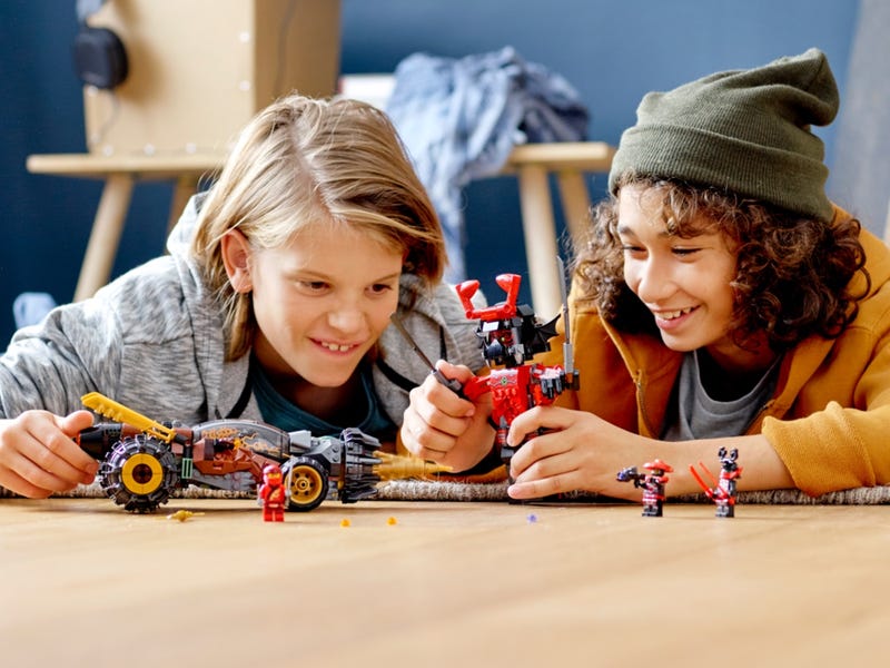 Kids can pretend be Cole in battle against the Stone Army with the LEGO® NINJAGO® Legacy Cole’s Earth Driller (70669) playset. The Driller has an opening cockpit for the Cole and Kai minifigures, 2 stud shooters to fire at the Giant Stone Warrior action figure big drill and engines rotate when the vehicle is pushed along.