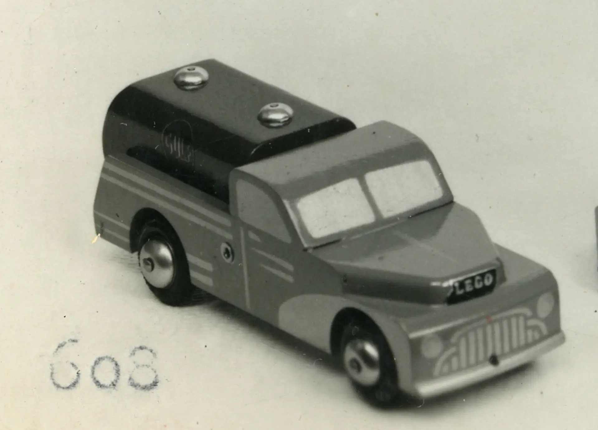 - Monteret med Benzinkapsler til LEGO benzinstander, nr. 406. Bil som passer til Falckstation, med gummihjul og reservehjul. 1952: Seriebiler