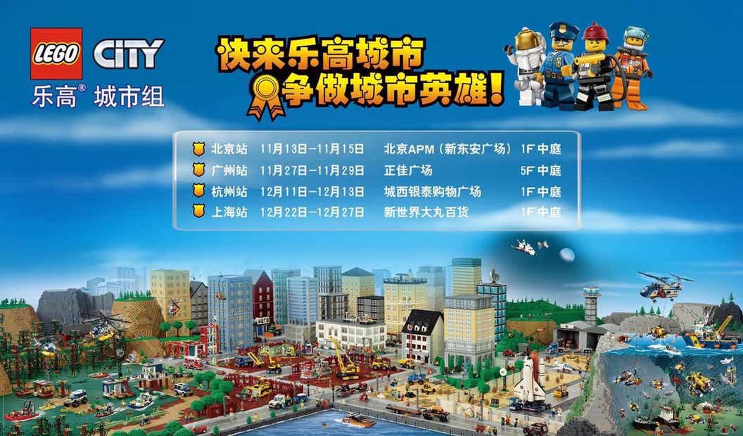 乐高®城市巡展继北京站之后,还将先后登陆广州、杭州和上海,为小朋友们打造实现英雄梦想的舞台,带来一场独特的城市英雄之旅。据悉,下一站乐高®城市将于11月27日来到广州正佳广场,赋予羊城的小朋友勇敢和正义的精神,实现城市小英雄的梦想。